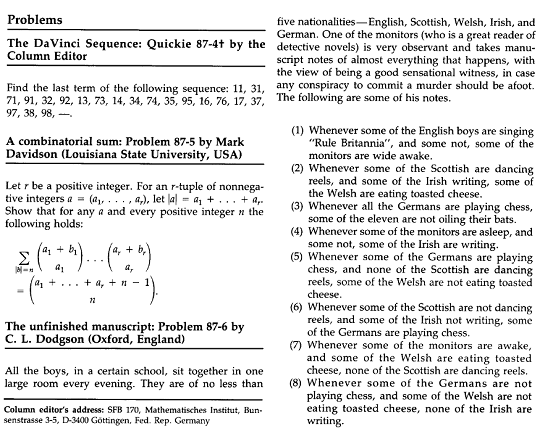 (iv) Mathematical entertainments_Steven H Weintraub 1987(文章連結)